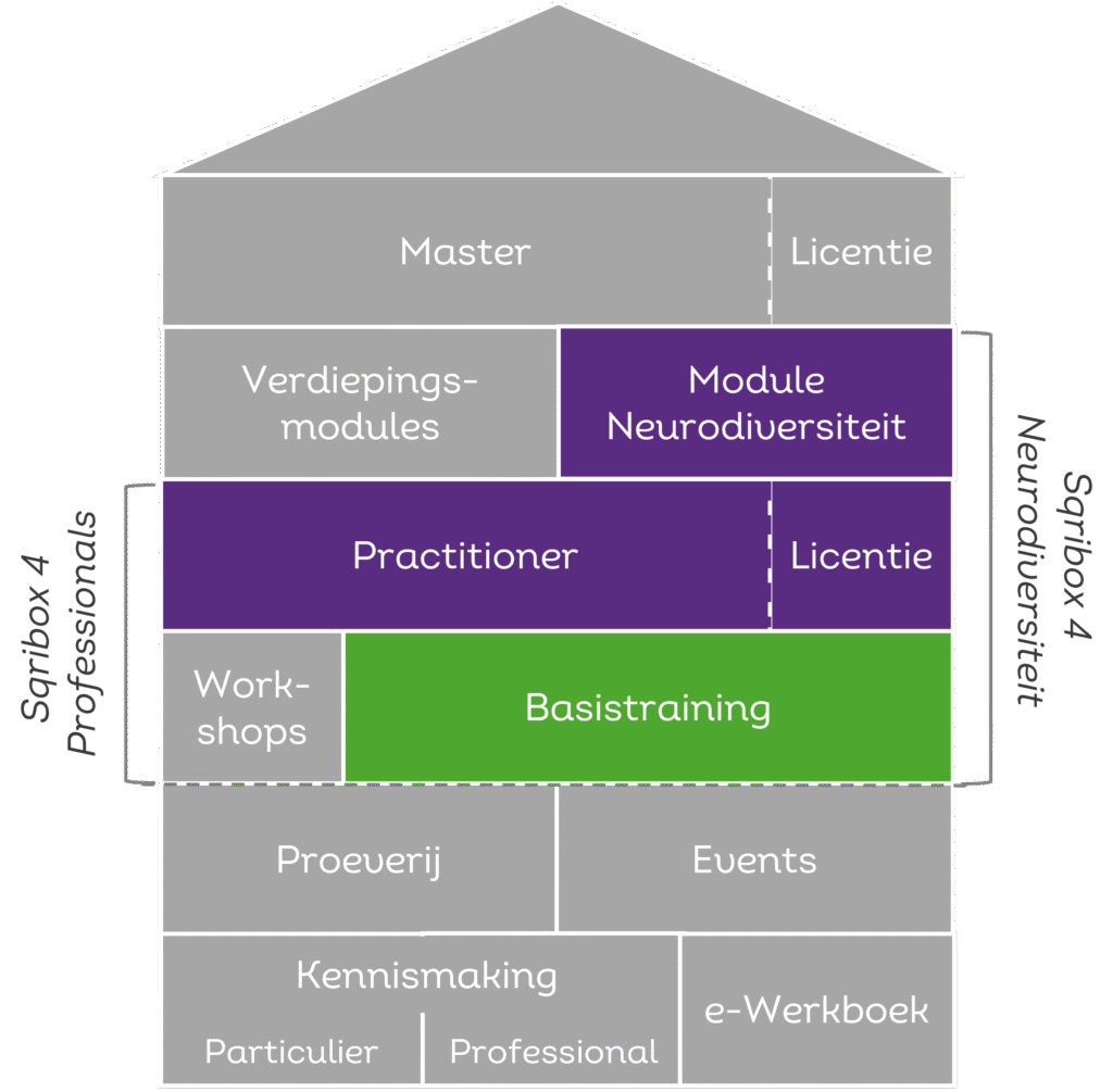 Met Sqribox 4 Neurodiversiteit breng je balans tussen structuur en expressie. Het creatieve proces geeft rust, terwijl de neurologische verankering zorgt dat nieuwe patronen blijven hangen. Je volgt de trainingen los, of kiest de complete opleiding.